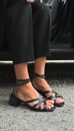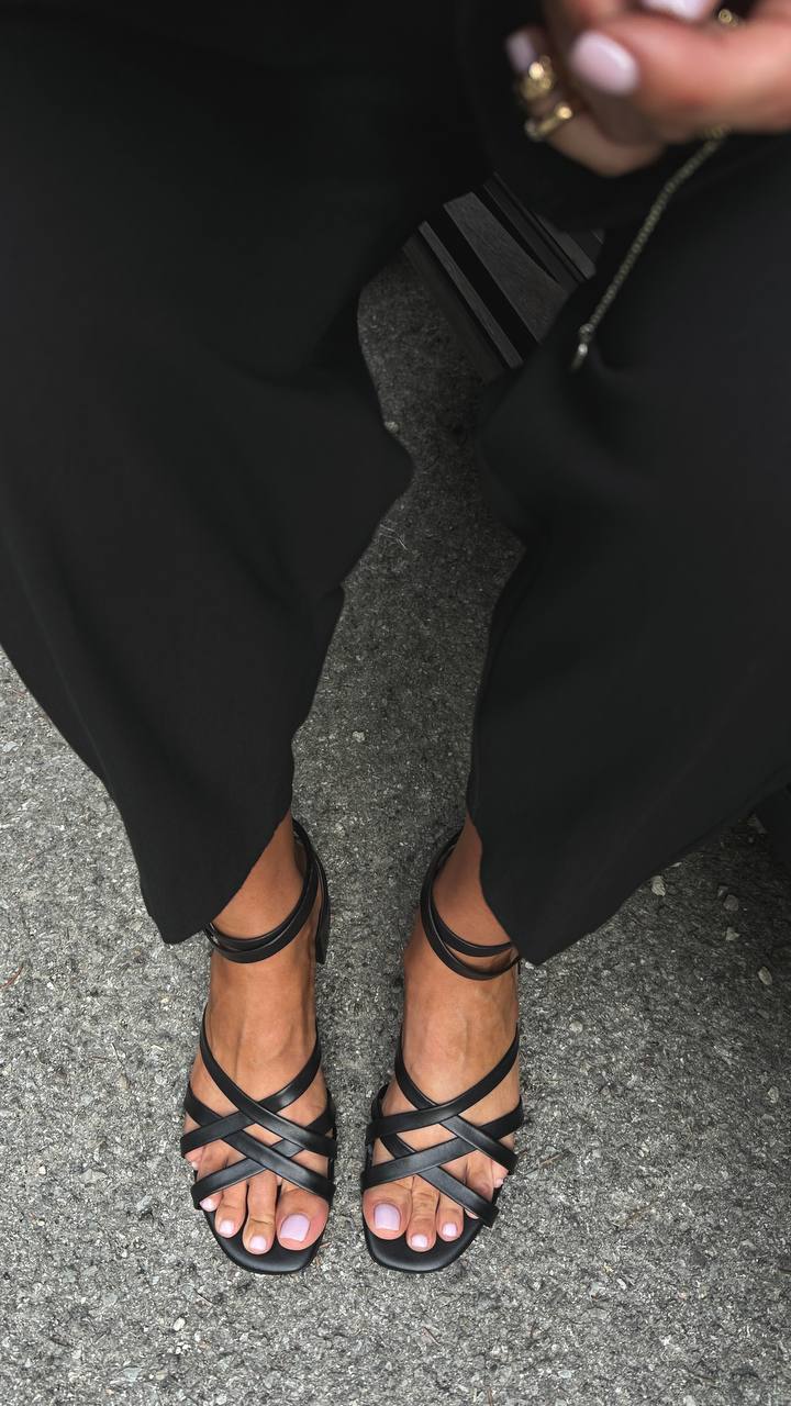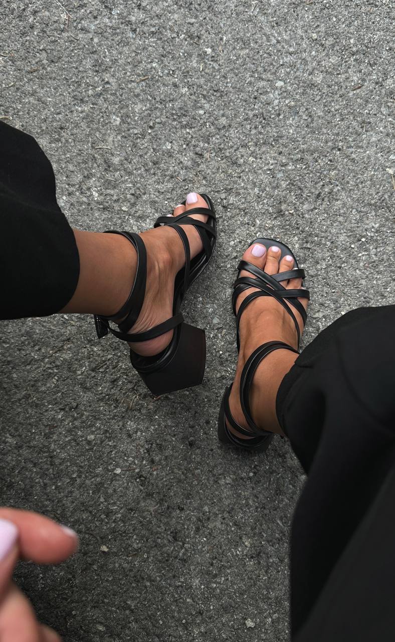 Вишукане переплетення ремінців на носику і щиколотці додає моделі ніжності, а зручний каблук 5 см забезпечує комфорт на весь день.